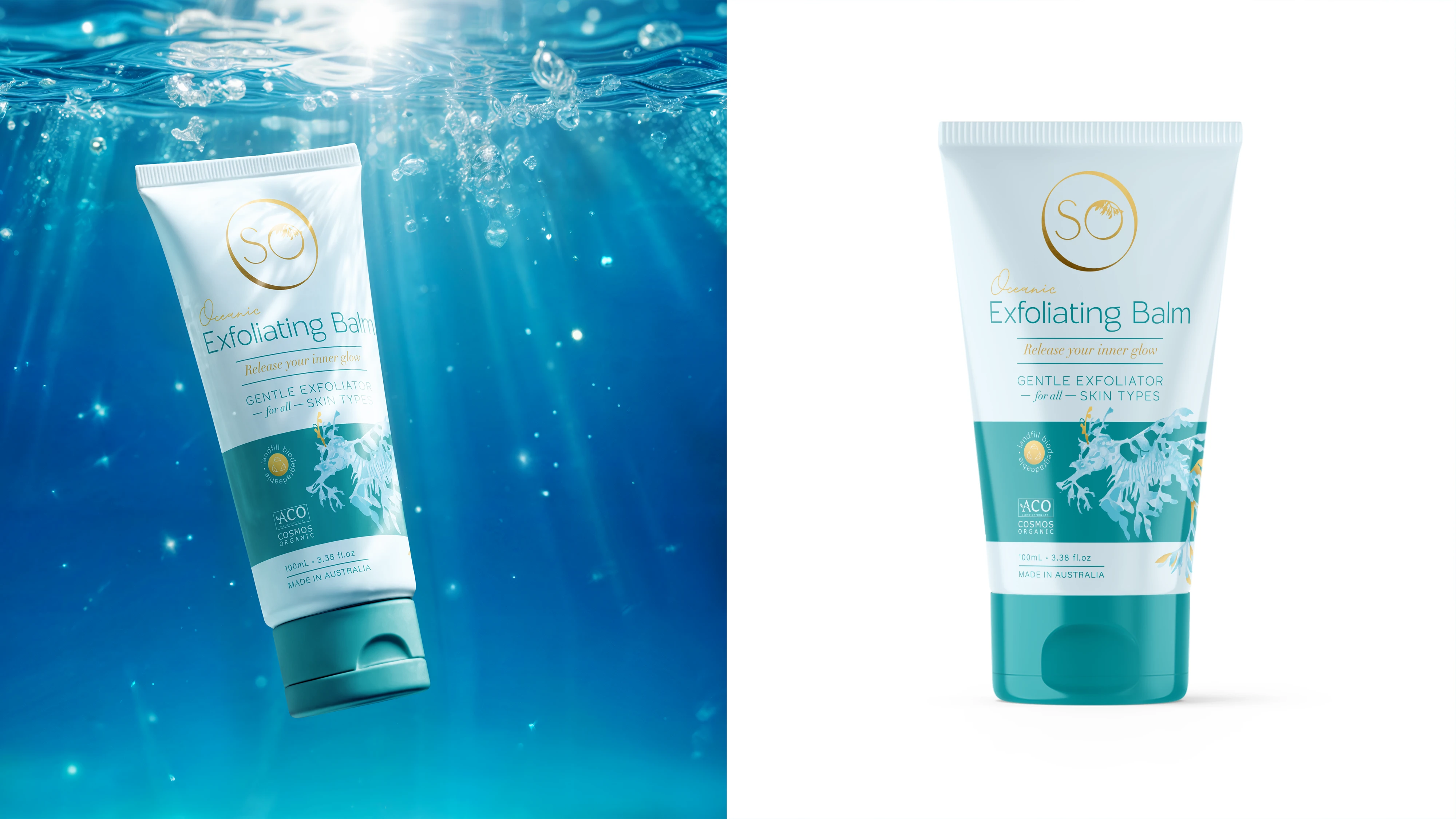 Within that system, each product was given its own visual cues to clearly communicate function and usage. The Cleansing Balm and Exfoliating Balm were designed to express purification and renewal, while the Day Cream and Evening Cream form a complementary moisturising pair, differentiated through subtle tonal shifts that reflect time-of-day use. This approach delivers clarity for the consumer while maintaining a scalable packaging architecture suited to future range expansion.